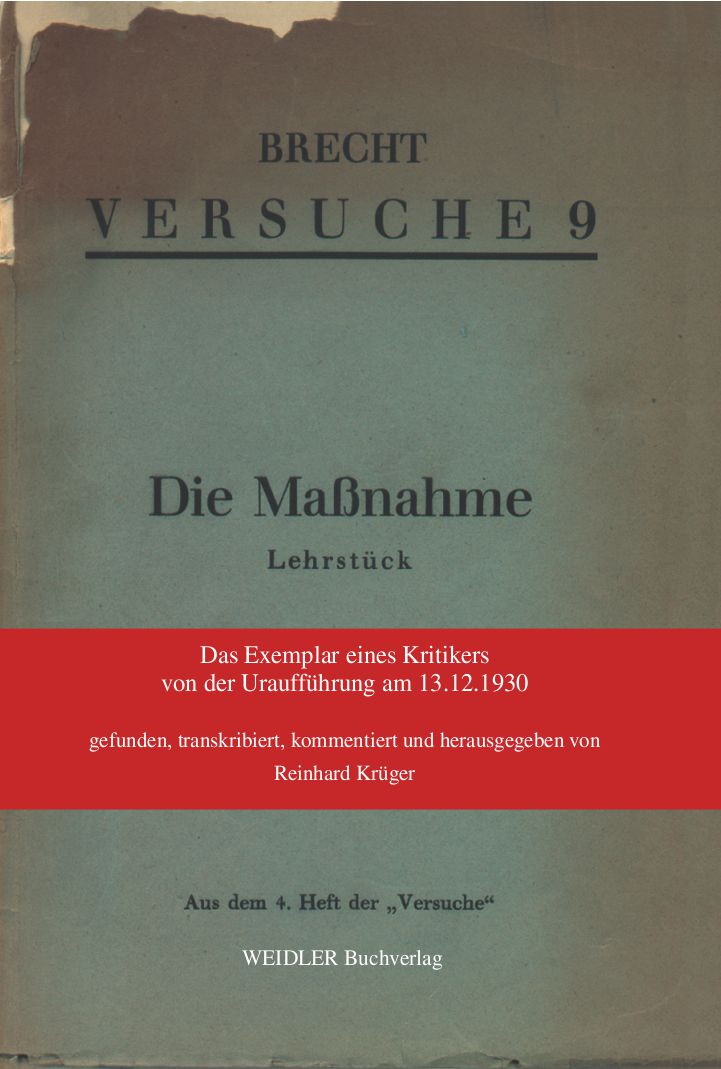 Es handelt sich um einen unkorrigierten Vorabdruck der “Maßnahme”. So stand es am 13. Dezember 1930 den Premierengästen zum Kauf für 20 Pf zur Verfügung. Das Heft ist voller Anmerkungen von zeitgenössischer Hand. Während der Premiere hat ein Zuschauer des Stücks umfangreiche Notizen an die Ränder der Seiten des Heftes geschrieben. In Fragen der Musik kennt er sich aus. Durch den Vergleich mit gedruckten Rezensionen kann man den konservativen Bühnenkritiker Paul Fechter als den Urheber der Notizen identifizieren. Er notiert über die Aufführung, was dem gedruckten Text nie zu entnehmen ist: wann Helene Weigel ihren Part der Vier Agitatoren spielt, wann Saxophone die Aufführung kommentieren, was Ernst Busch als Agitator spricht, ob die Musik sich revolutionär anhört, ob der Großberliner Arbeiterchor - der ‘Kontrollchor’ des Stücks - “unisono” oder “polyphon” singt, welche Worte in den Songs durch besondere Betonung herausgehoben sind. Passagen sind zu lesen, die bereits über den gedruckten Text hinaus als mündliche Einwürfe von Hanns Eisler vorgetragen wurden. Brecht hat sie später ausdrücklich als Möglichkeiten der Variation genannt: sie sind hier schon als Bestandteile der Premiere belegt und wiedergegeben. Schließlich liest man am Ende des Heftes die Feststellung, daß Eislers ‘Anti-Musik’ zu diesem Stück die angemessene musikalische Form des Kommunismus als Anti-Religion sei. Wir halten ein einmaliges Dokument der Aufführung eines der frühen Brecht-Eisler-Stücke in den Händen. Nur selten wird eine Brecht-Inszenierung aus der Zeit vor dem Krieg durch konkrete Anmerkungen nach Jahrzehnten noch einmal so plastisch vorstellbar, wie nach diesen reichen Notizen des zeitgenössischen Kenners der deutschen Musik- und Theaterszene zu Beginn der 30er Jahre.