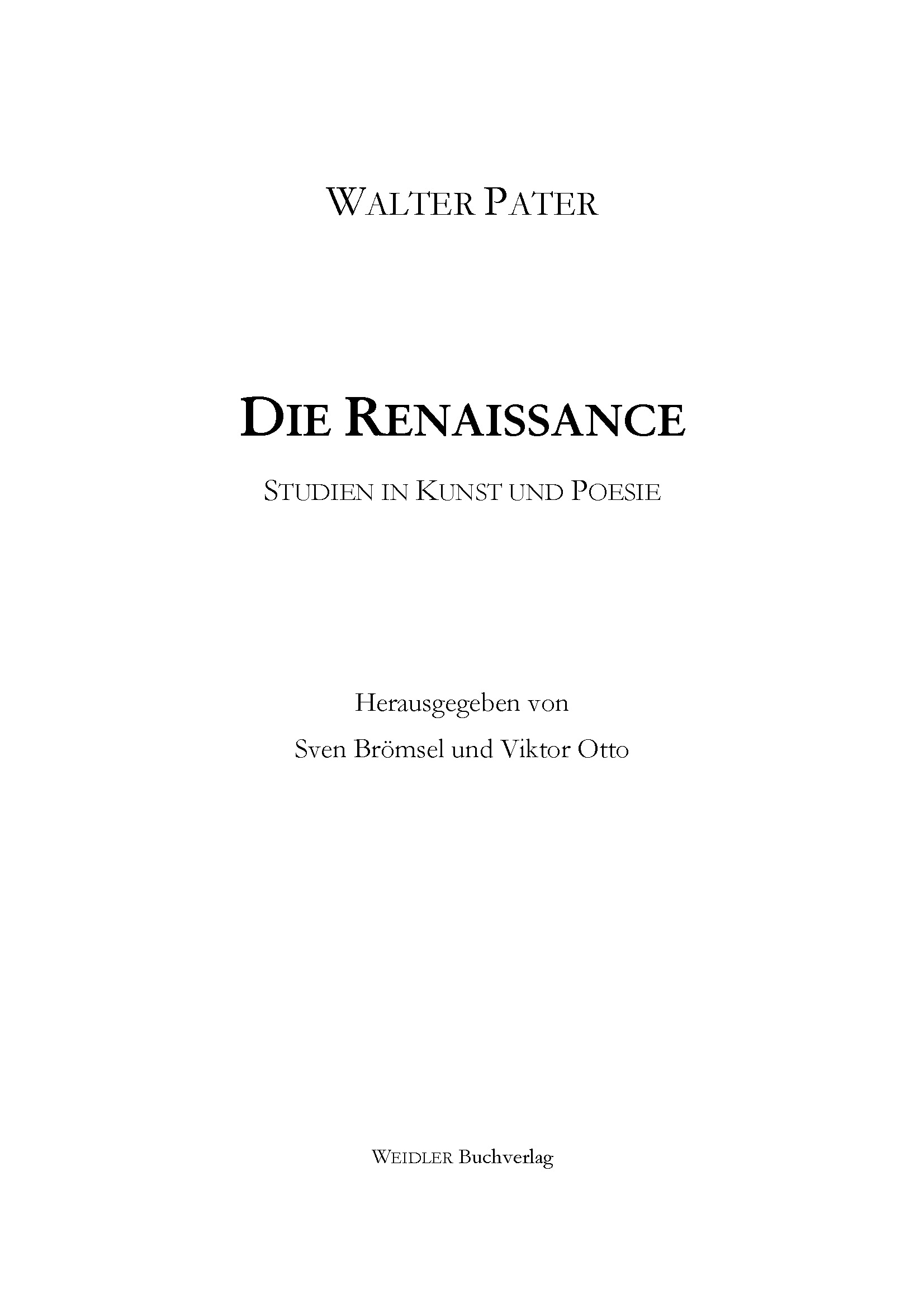 1873 publizierte der Oxforder Philologe und Kunstphilosoph Walter Horatio Pater (1839-1894) sein erstes Buch – eine Sammlung von Künstlerporträts, die unter dem Titel „Die Renaissance – Studien in Kunst und Poesie“ zu einem Gründungsdokument des europäischen Ästhetizismus wurden. Pater brach in seinem Hauptwerk mit der formalistischen, moralischen und religiösen Strenge seiner Zeit, um dem subjektiven Genuß von Kunst und Leben zu neuer Freiheit zu verhelfen. Paters berühmtester Schüler war Oscar Wilde. Freud, Hofmannsthal, Lukács und Rilke waren seine begeisterten Leser. 1902 erschien „Die Renaissance“ auf Deutsch im experimentierfreudigen Diederichs-Verlag in der Übertragung von Wilhelm Schölermann.