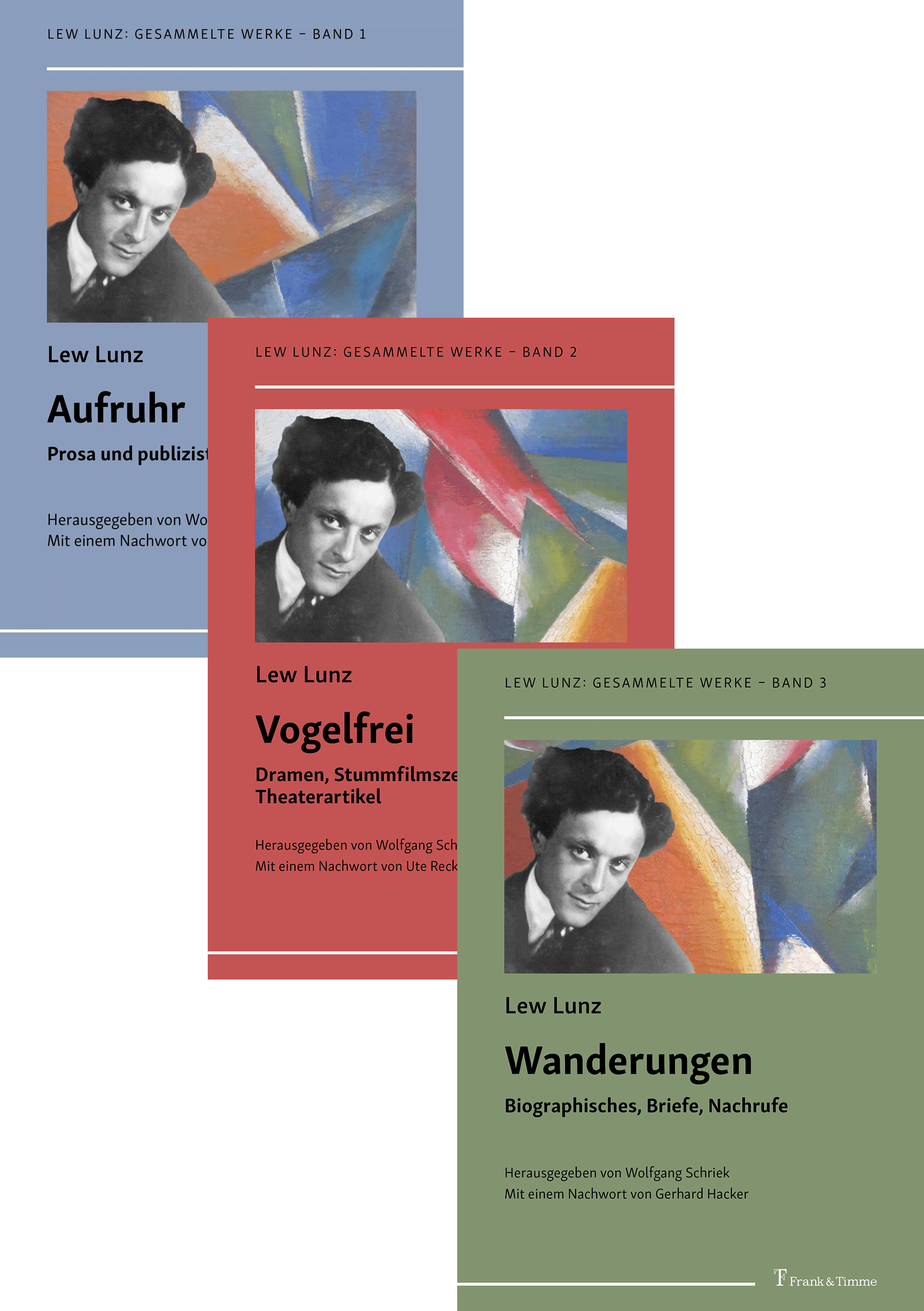 Der russische Schriftsteller Lew Natanowitsch Lunz (1901–1924), auch bekannt als Lev Lunc, hat trotz seines frühen Todes ein beachtliches Werk hinterlassen. In dieser dreibändigen Edition liegt es erstmals vollständig auf Deutsch vor. Neben dem Manifest „Warum wir Serapionsbrüder sind“ hat Lunz mehrere Dramen und Stummfilmszenarien, Erzählungen, Glossen, Essays und Feuilletonartikel sowie literaturtheoretische Abhandlungen verfasst. Biographische Texte, Briefe und Nachrufe ergänzen die akribisch annotierte Edition.