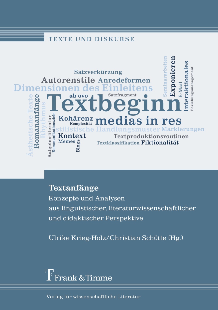 Für zahlreiche Textsorten ist der Textanfang von großer Bedeutung. So können die Überschrift, die ersten Zeilen oder Seiten darüber entscheiden, ob ein Zeitungsartikel, eine Anleitung oder ein Roman überhaupt gelesen werden. Doch bis wohin geht der Textanfang? Und welche Textteile gehören dazu? Um diese Fragen zu beantworten, muss man sowohl ästhetische Texte als auch Gebrauchstexte aller Kommunikationsformen und -bereiche untersuchen. Entsprechend heterogen sind die Zugänge und Methoden zur Analyse der Einstiegsphasen und -elemente von Texten. In diesem Band reicht das Spektrum von sprachwissenschaftlichen Beschreibungstechniken (z. B. textlinguistischen, korpuspragmatischen und stilistischen) über literaturwissenschaftliche (z. B. Autoren- oder Epochenstile) bis hin zu sprachdidaktischen (z. B. Textproduktionsroutinen).